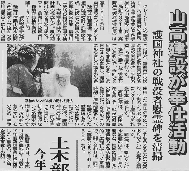 | 平成31年1月 | 平成30年度新潟県建設業新分野進出優良事業として表彰 (※新潟日報・建設工業新聞に掲載↓) |